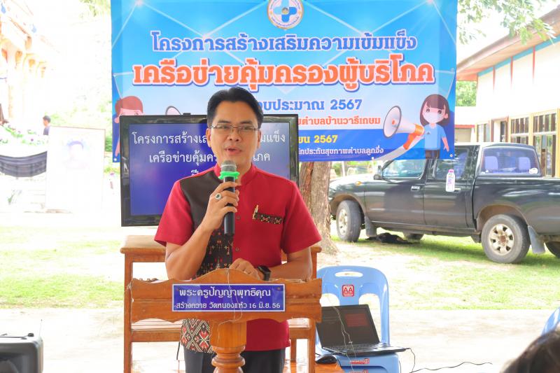 18 กันยายน 2567 เวลา09.30น. นายอนันตสิทธิ์ ปีขาน นายก อบต.ดูกอึ่ง มอบ นายพจวรุณ นาสุรินทร์ รองนายกฯ เป็นประธานเปิดโครงการสร้างเสริมความเข้มแข็งเครือข่ายคุ้มครองผู้บริโภค ณ วัดบ้านหนนองแห้ว